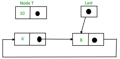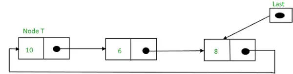 위의 순환 단일 연결 리스트는 다음과 같이 나타낼 수 있습니다.