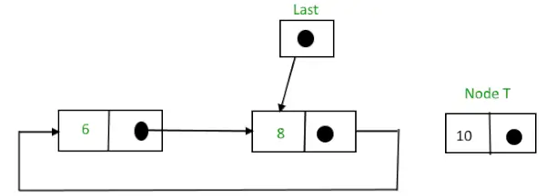 끝에 노드를 삽입하기 전의 순환 연결 목록