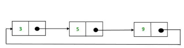 자바 // Define the Node class class Node { int value; Node next; public Node(int value) { this.value = value; } } // Initialize the Nodes. Node one = new Node(3); Node two = new Node(5); Node three = new Node(9); // Connect nodes one.next = two; two.next = three; three.next = one;>
